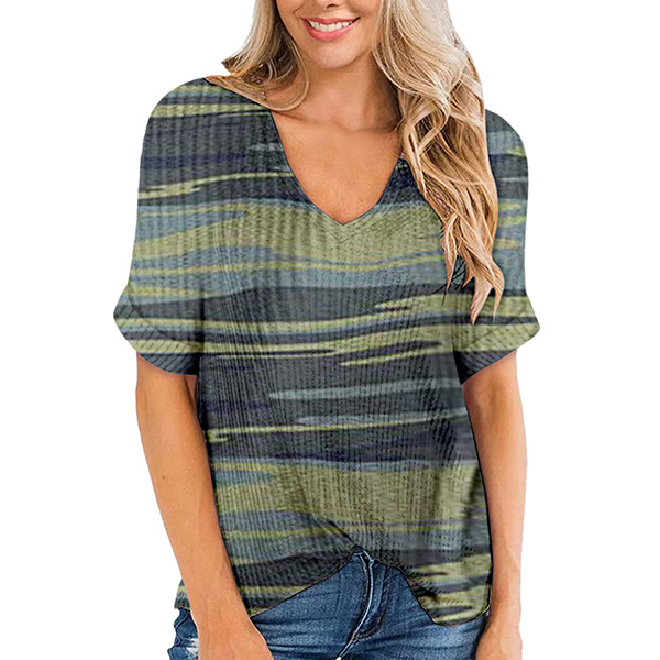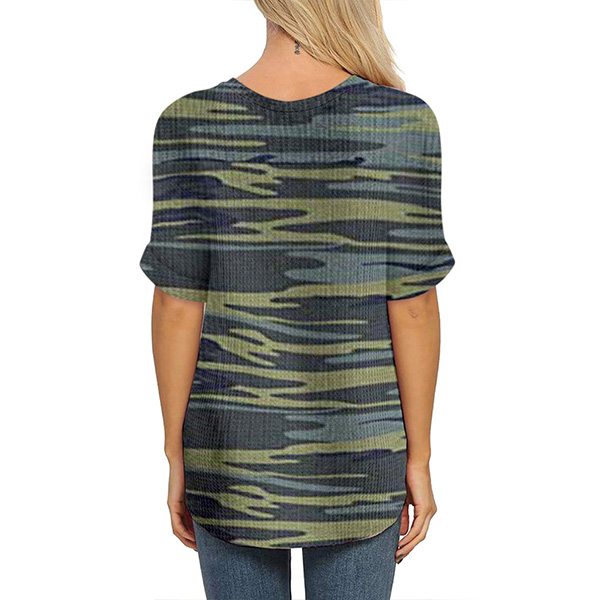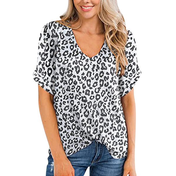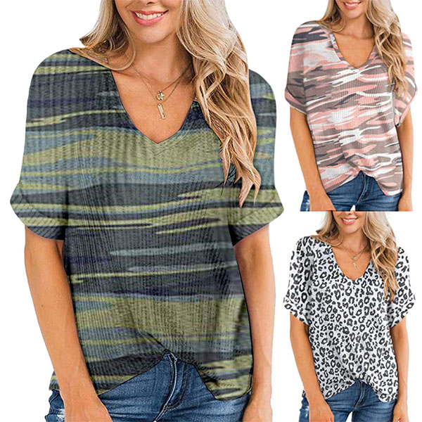 Crafted from soft and breathable fabric,with short sleeve and v-neck design,this t-shirt is sure to offer you a comfortable day. Moreover,the camouflage/leopard printed details will make this piece look more eye-catching and stylish. This piece is just the thing you need on your casual days.