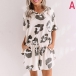 Fashion Short Sleeve V-neck Printed T-shirt + Shorts Nightwear Set