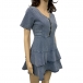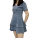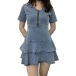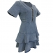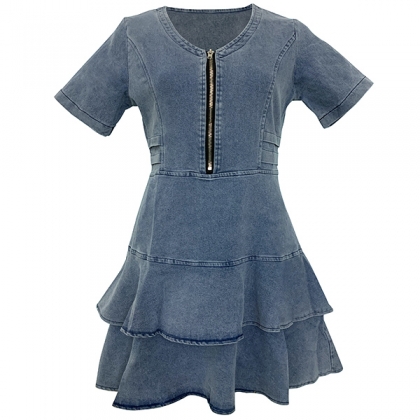 Your wardrobe can have an update when you add this denim dress to it. It is finished with short sleeve,v-neck,riffle hem and a fit silhouette,this dress not only can illuminate your slender figure,but also can express your sweet and feminine side. So why not slip into this piece to boost your style and charm?