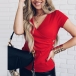 This t-shirt that exudes cozy and stylish vibes is worth to arouse your attention in these summer days. It boasts a solid color,with short sleeve,v-neck and side-button design,this piece can keep the comfy while it boosts your style and charm.