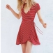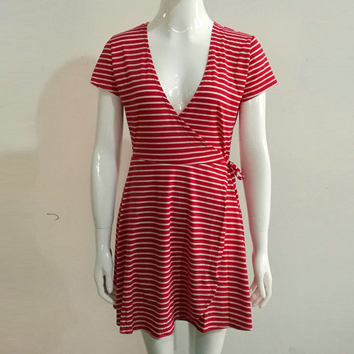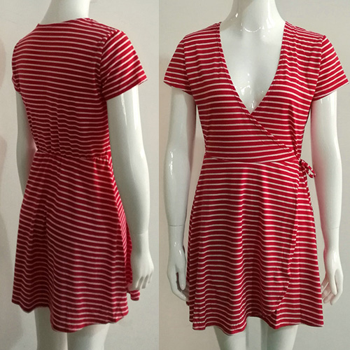 with short sleeve,v-neck and waist with lace-up design,this dress can give you a stylish look.