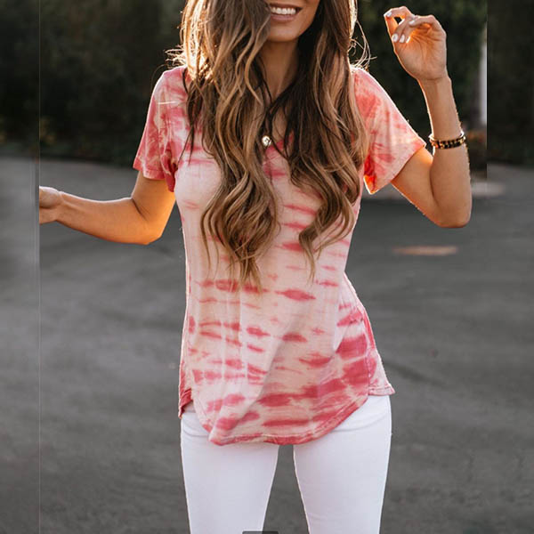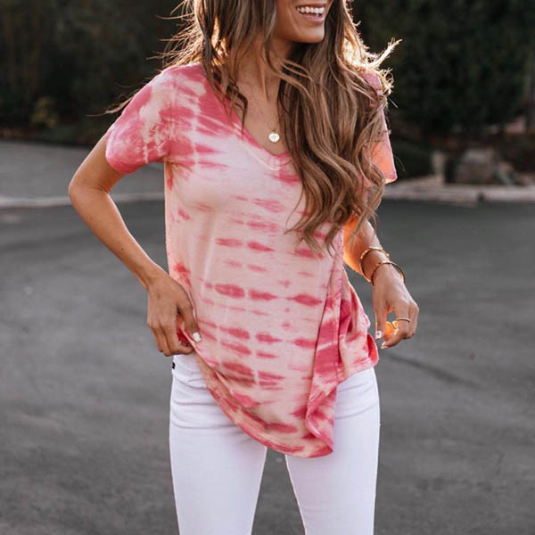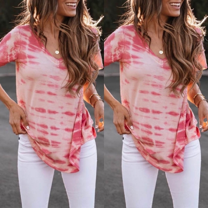 Fashion Short Sleeve V-neck Tie-dye Printed T-shirt