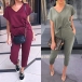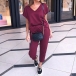 Don't know how to match? Then this two-piece set can be your perfect solution. Solid color style,including a short sleeve v-neck top and a pants,this two-piece set not only can give you a comfortable day,but also can maintain a casual,relaxed and stylish style.