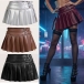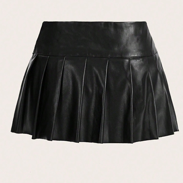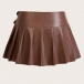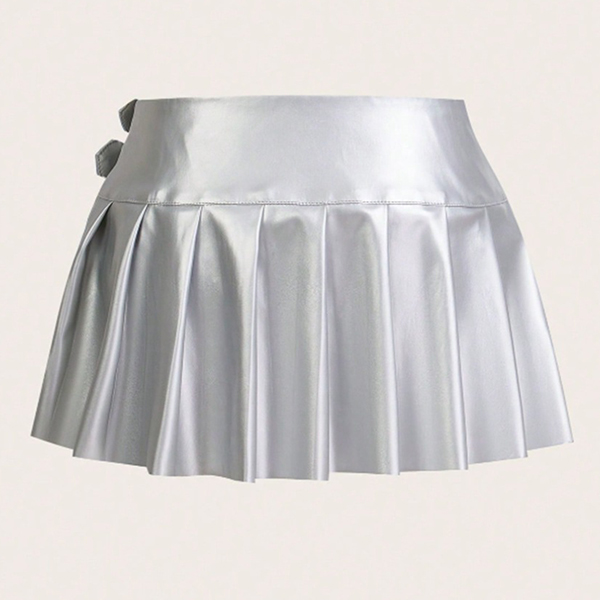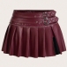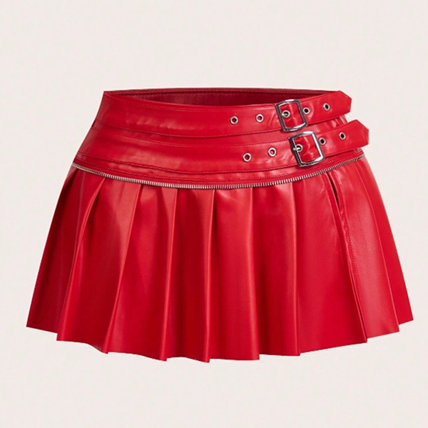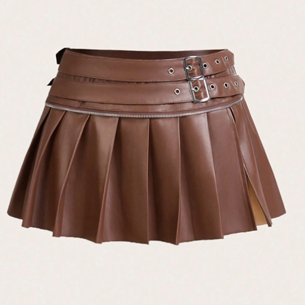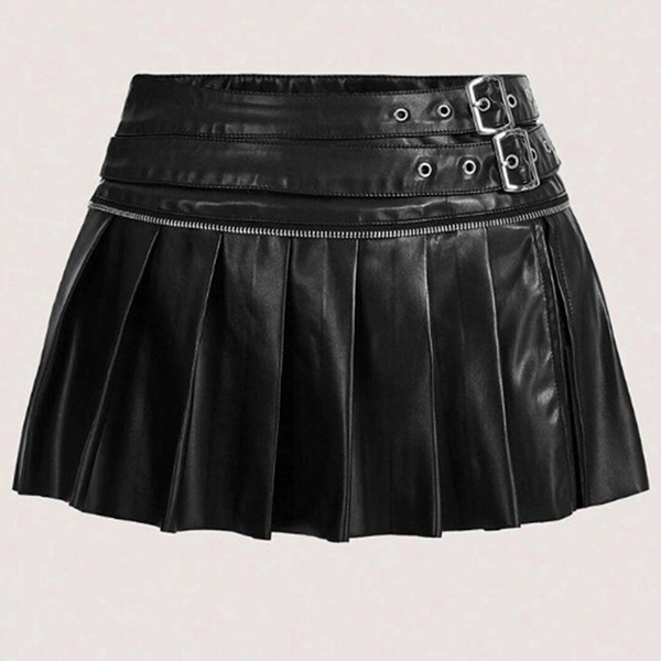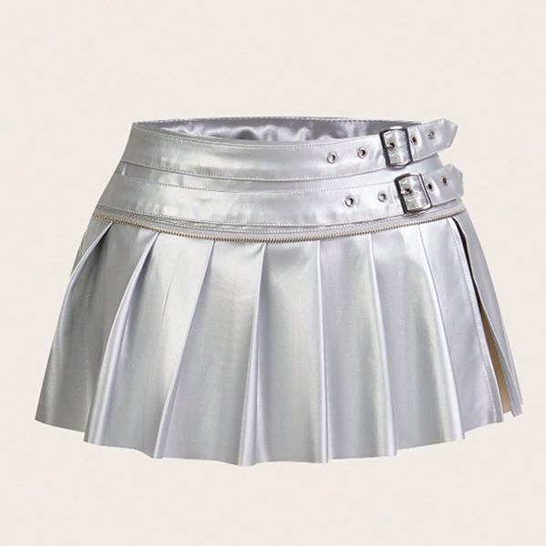 Fashion Side Buckle Pleated Side Slit Mini Skirt