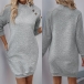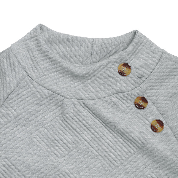 Fashion Side Button Crew Neck Long Sleeve Textured Sweatshirt Dress