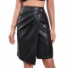 Fashion Side Button Ruched Side Slit Artificial Leather PU Skirt