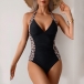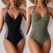 This monokini features a striking leopard print on the sides, contrasting with a solid color front and back for a unique and eye-catching look. Perfect for making a statement at the beach or pool~