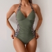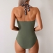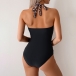 Fashion Side Leopard Printed Contrast Color Halterneck Backless Monokini