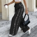These statement trousers features side leopard stripe design creates striking contrast against the base fabric. Perfect for casual outings, weekend wear, or fashion-forward occasions.