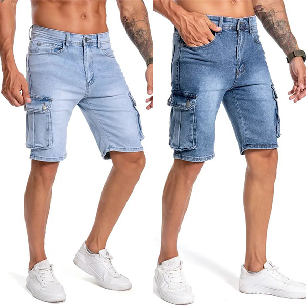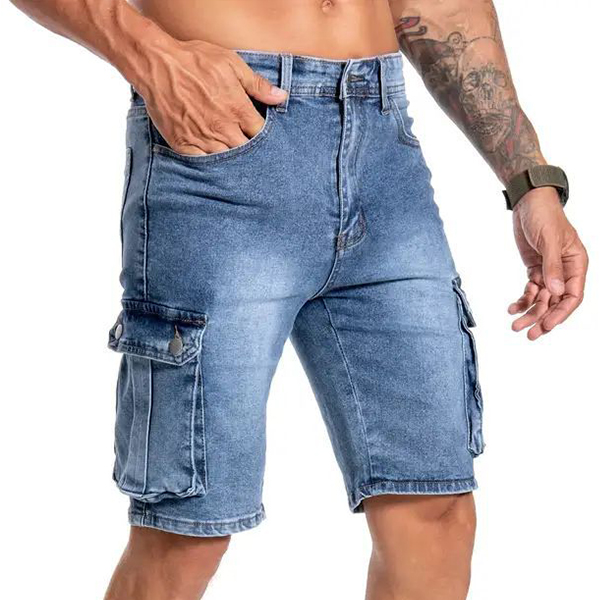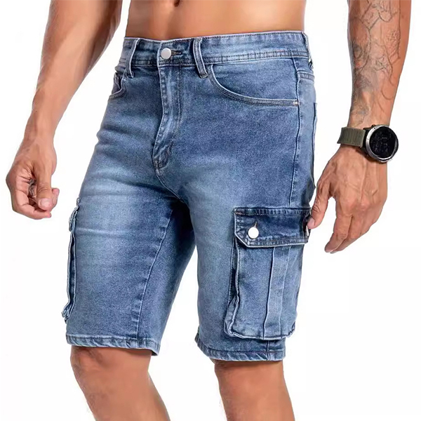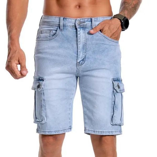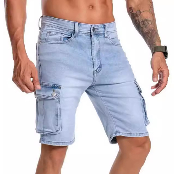 Short en denim délavé avec poches latérales tendance pour hommes