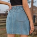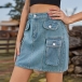 Fashion Side Patch Pockets Old-washed Denim Skirt