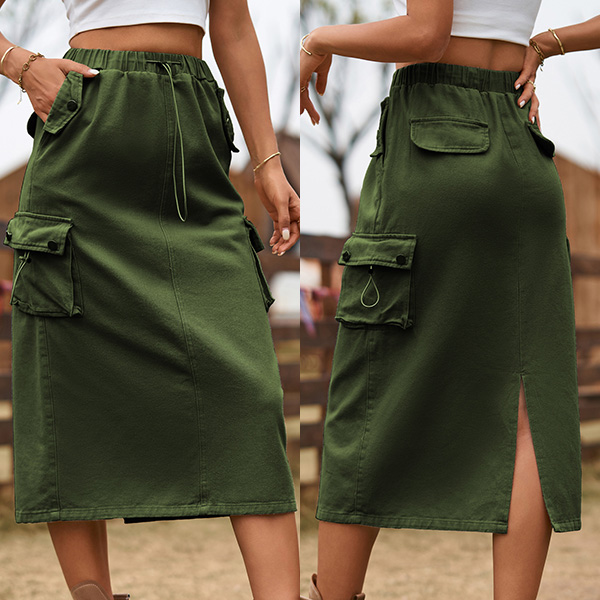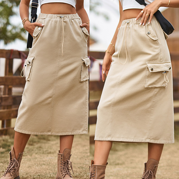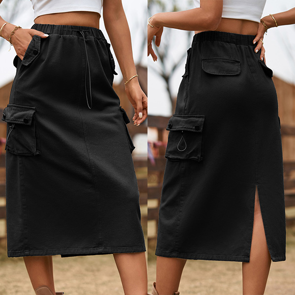 This skirt features a sleek pencil design that is both flattering and feminine, while the side pockets add a touch of functionality to the overall look. Made from high-quality denim fabric, the skirt is both comfortable and durable and is designed to flatter your figure and create a sleek silhouette.