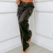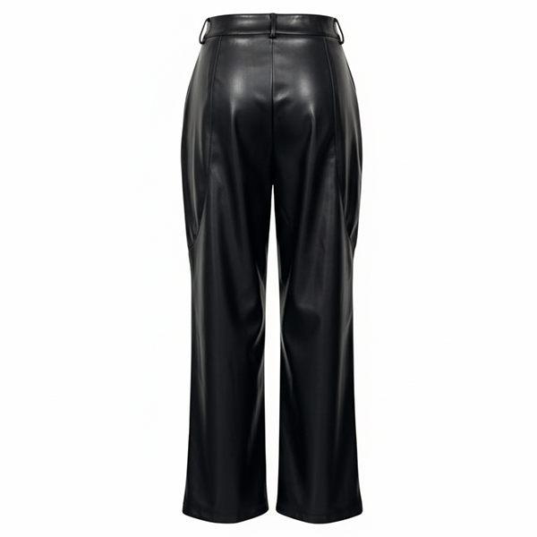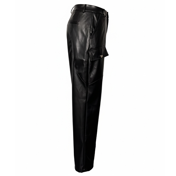 These pants feature practical side pockets with streamlined straight-cut silhouette and contemporary artificial leather construction for modern urban sophistication. Pair with fitted tops and ankle boots for urban sophisticated elegance.