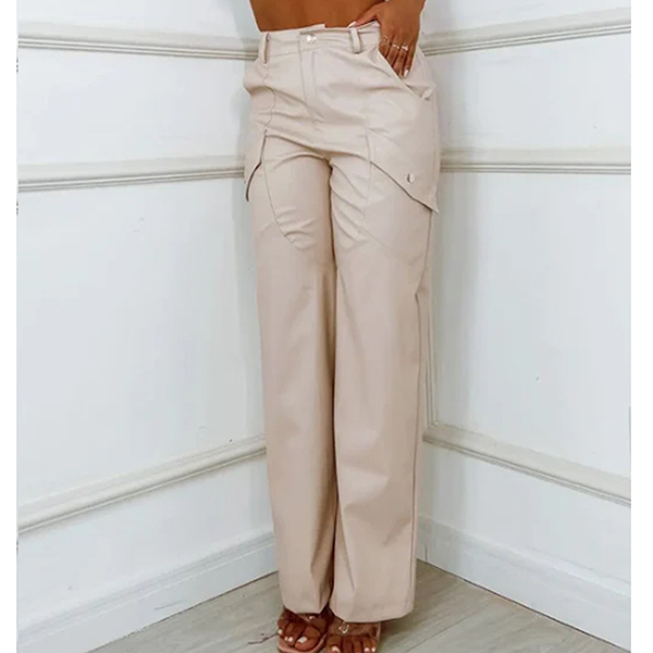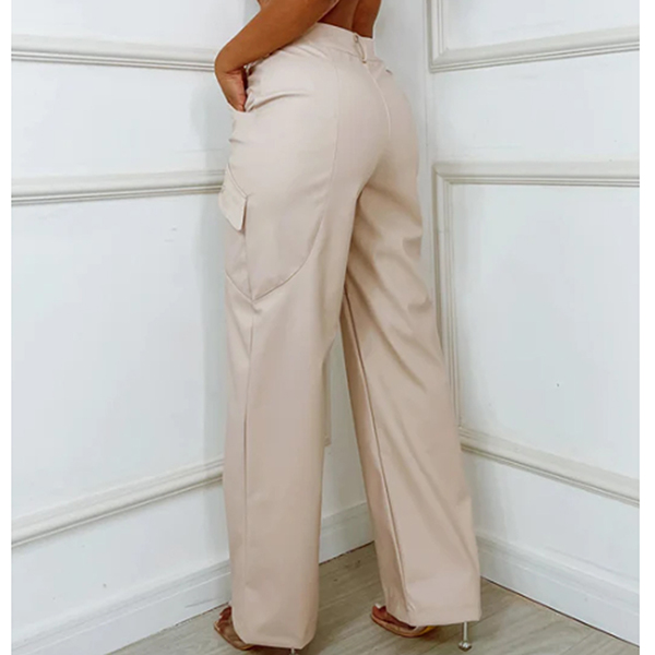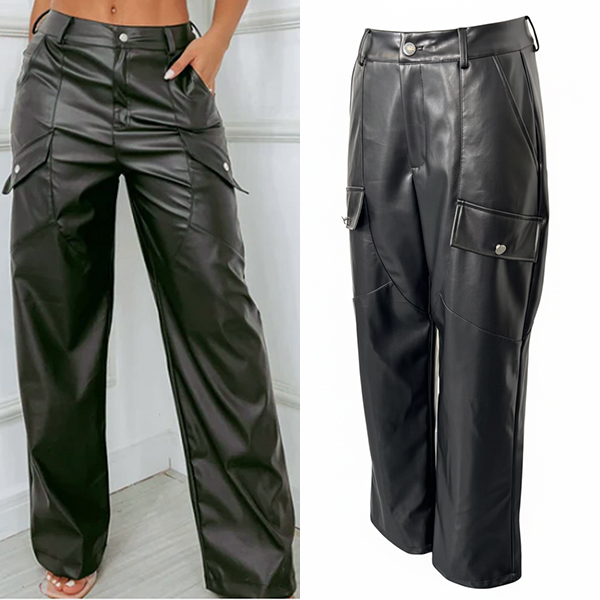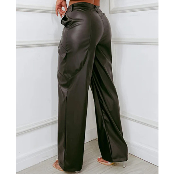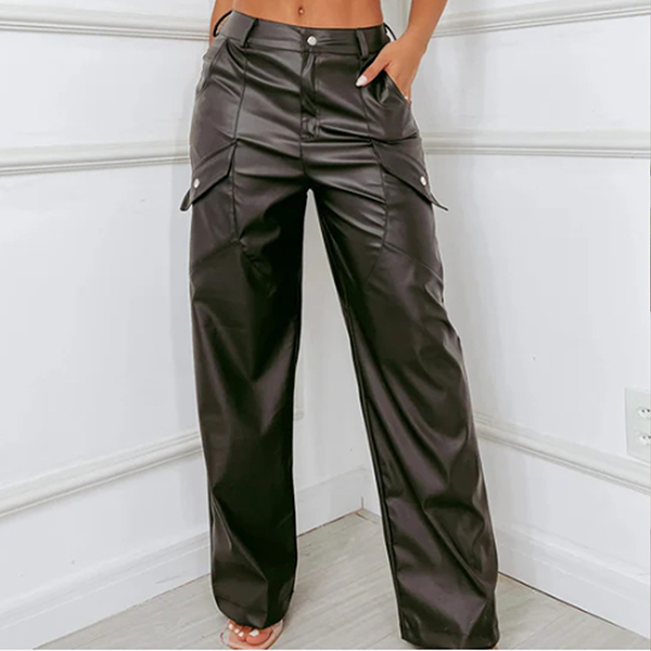 Fashion Side Pockets Straight-cut Artificial Leather PU Pants