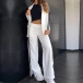 This stylish set features a chic blazer and coordinating wide-leg pants with a trendy side stripe print. The blazer adds a touch of sophistication with its tailored silhouette and structured design, while the wide-leg pants offer a fashion-forward look with their flattering fit and eye-catching print. Wanna have a try?
