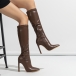 Fashion Side Zipper Pointed-toe High-heeled Artificial Leather PU Boots