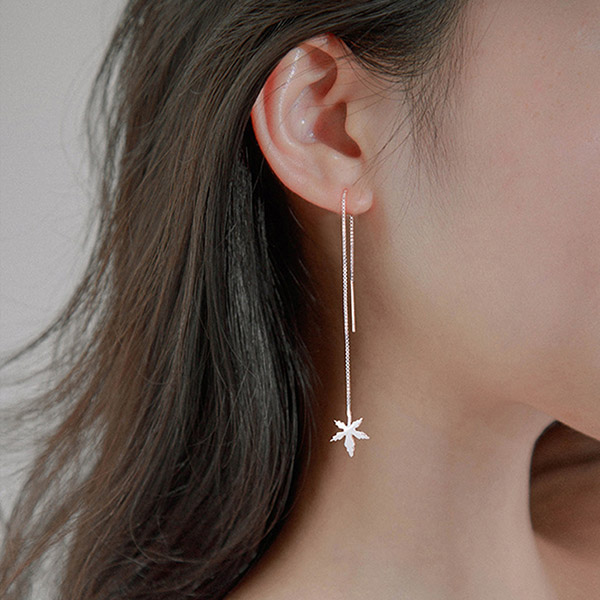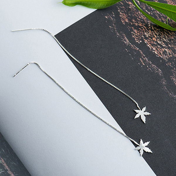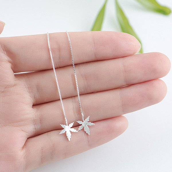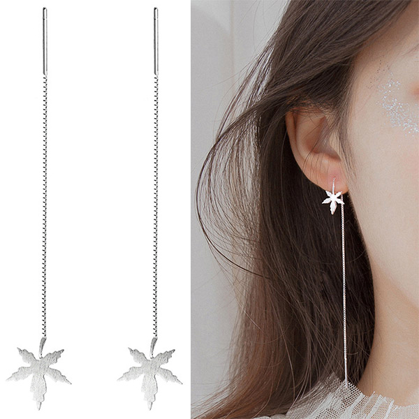 This pair of ear lines comes with a classic yet stylish silver tone,decorated with a maple leaf pendant,which makes it look so stylish and attractive. So why not finish a more charming daily look with these pieces?