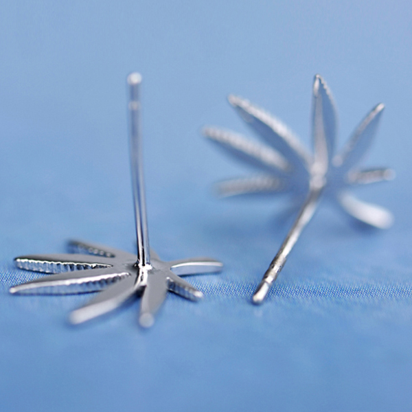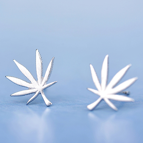 Fashion Silver-tone Maple Leaf Shaped Stud Earrings