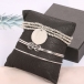 This bracelet set comes with a classic yet stylish silver tone,including 3 pieces different bracelets,which can embellish bared wrist and enrich your overall dress up.