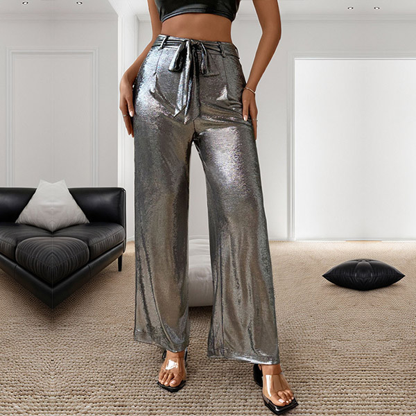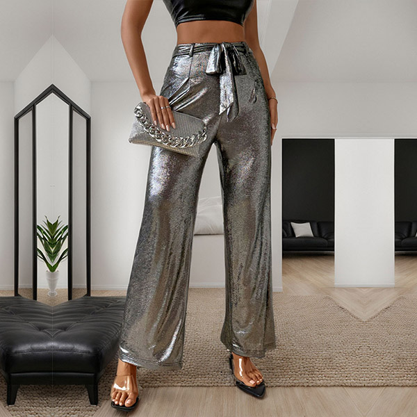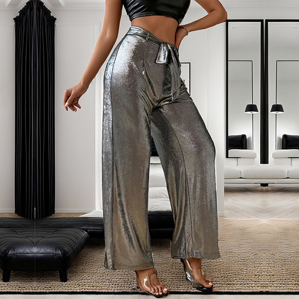 These sleek and sophisticated pants feature a stunning silvery hue and a classic straight-leg silhouette, creating a polished and modern look. Wanna have a try?