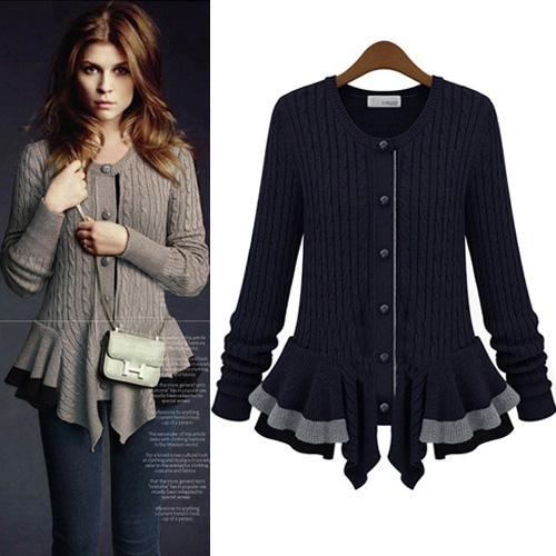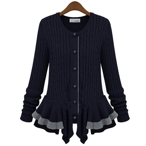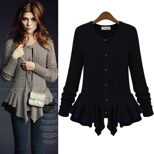Fashion Single-breasted Round Neck Irregular Hem Knitted Cardigan