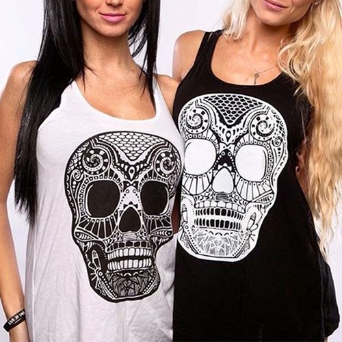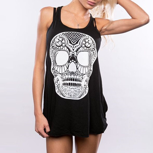 skull head pattern,crafted from soft and cozy fabric,with a relaxed-fit silhouette,this tank top can keep you cozy yet stylish. Perfect for matching with your any bottoms.