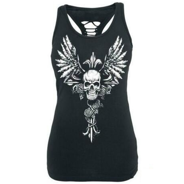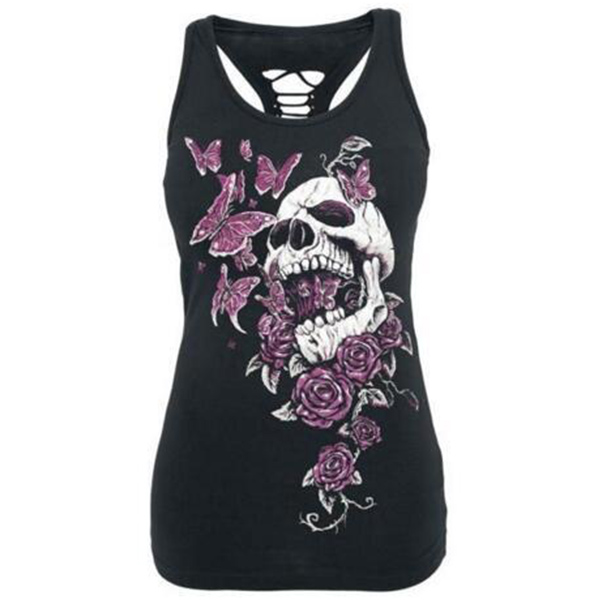 Its skull head printed pattern adds some chic and punk tone. For the hot summer season,you can opt for this piece.