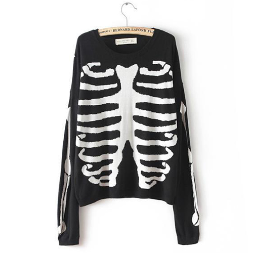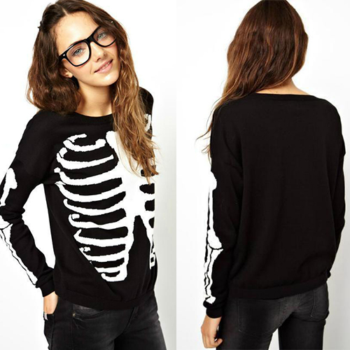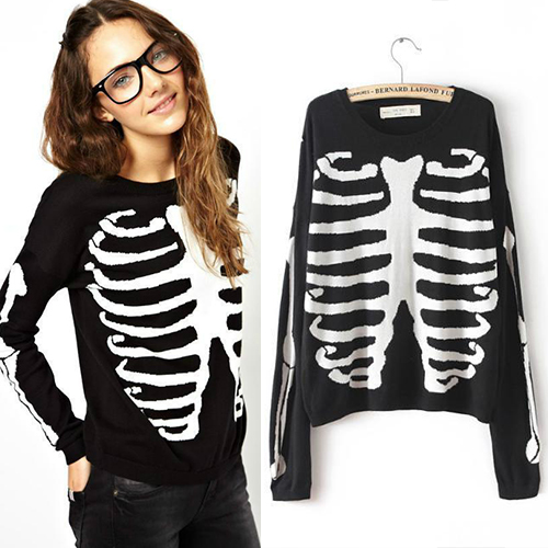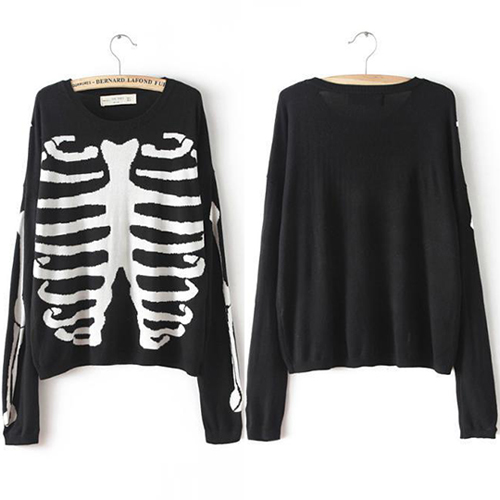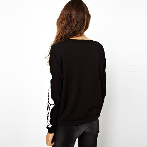 Features skull pattern,chic and exaggerated. Long sleeve,round neck and loose design,comfortable to wear.