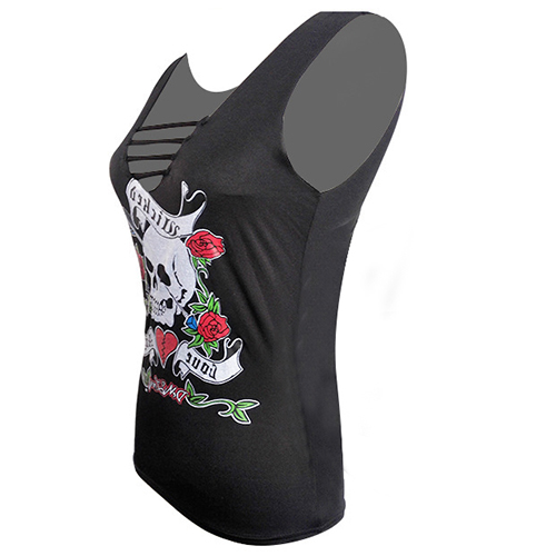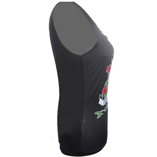 Wow! So cool! Isn't it? Skull and rose flowers printed design makes this T-shirt more eye-catching