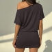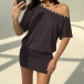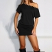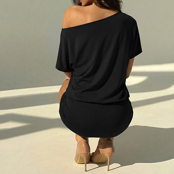Fashion Slant Shoulder Beaded Short Sleeve Bodycon Dress