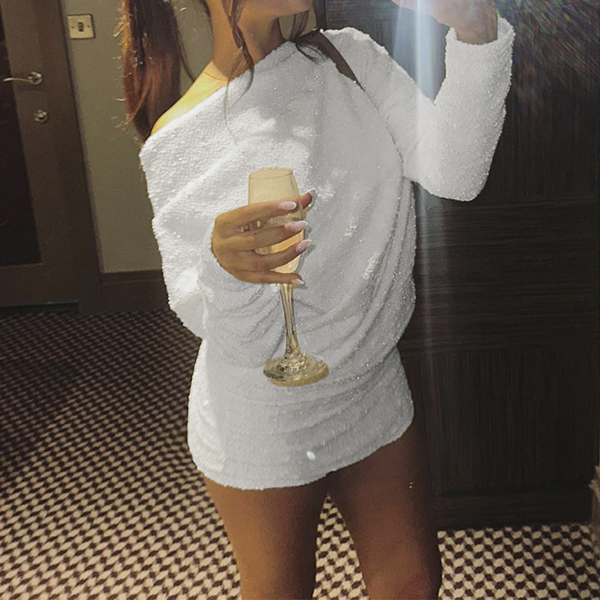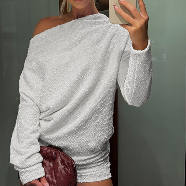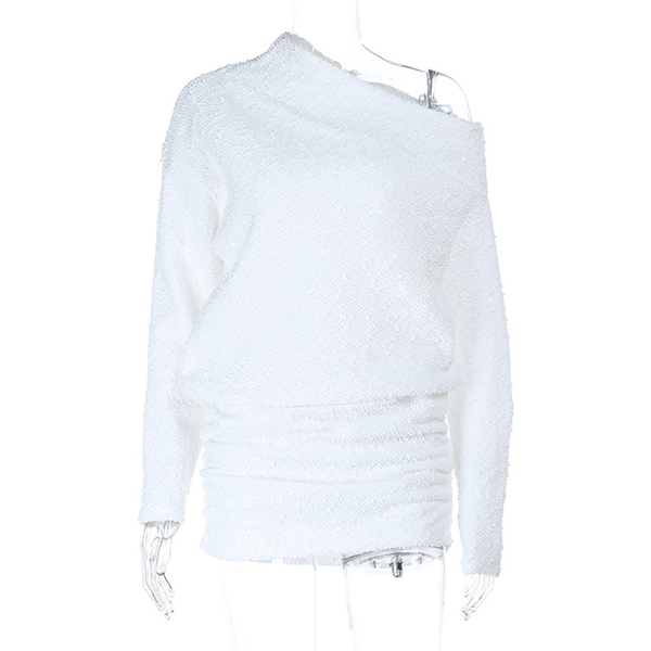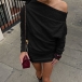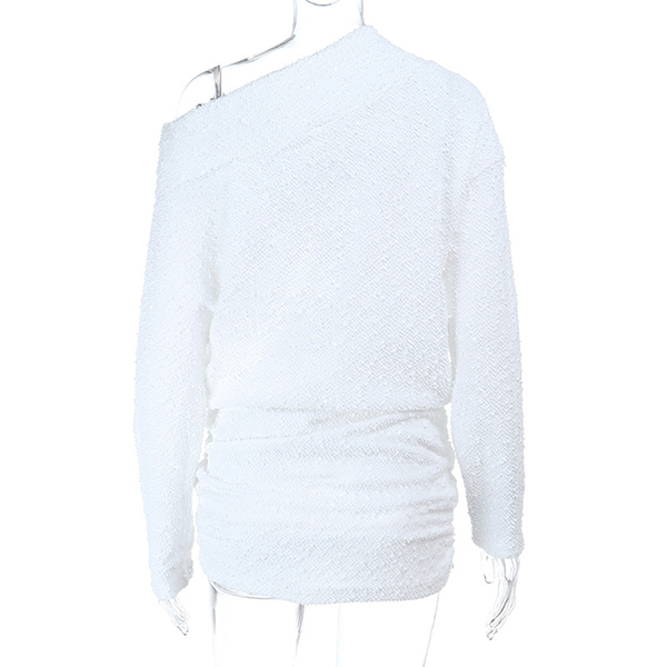 Fashion Slant Shoulder Long Sleeve Bodycon Party Dress