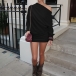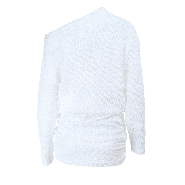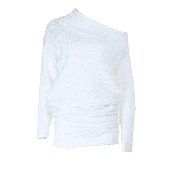 This sophisticated dress features dramatic slant shoulder styling with figure-enhancing bodycon silhouette and elegant long sleeve design for contemporary party elegance. Black and white, which one do you like?