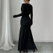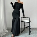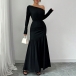 Fashion Slant Shoulder Long Sleeve High-rise Ruffle Hemline Maxi Dress