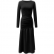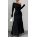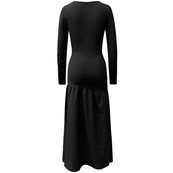 This maxi dress features a slant shoulder design that adds a modern and chic touch, long sleeves for extra coverage, a high-rise waistline for a flattering silhouette, and a ruffle hemline that adds a dramatic and romantic flair to the design.