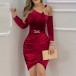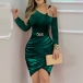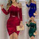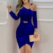 Fashion Slant Shoulder Long Sleeve Irregular Hemline Chain Bodycon Dress