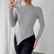 Fashion Slant Shoulder Long Sleeve Irregular Hemline Ribbed Shirt