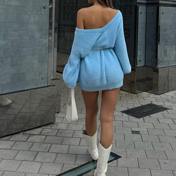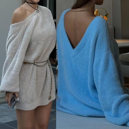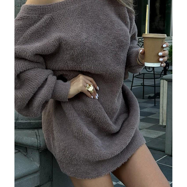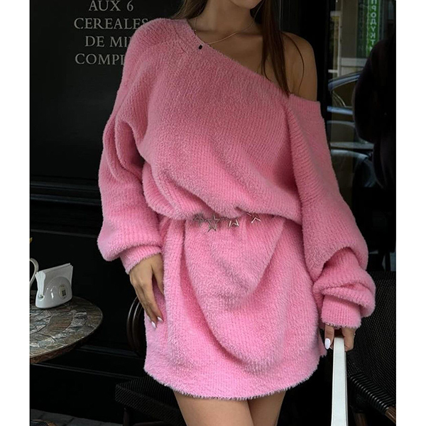 Fashion Slant Shoulder Long SLeeve Plush Dress