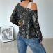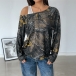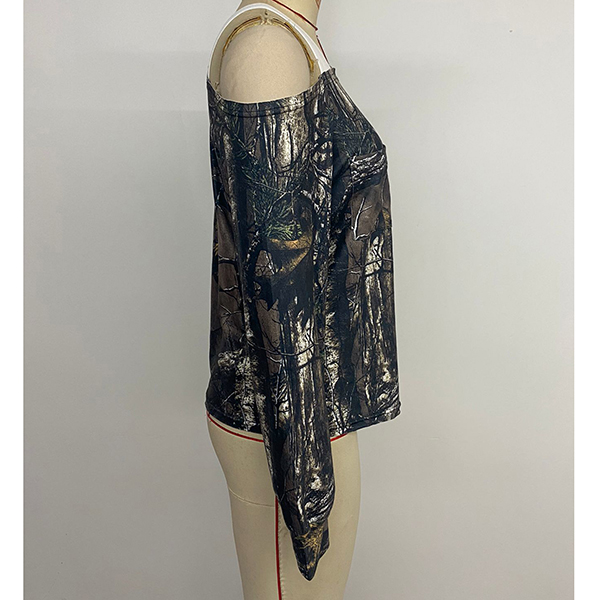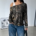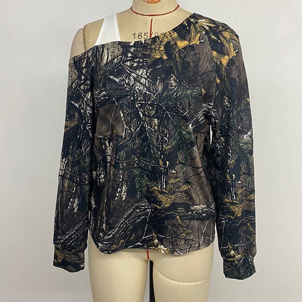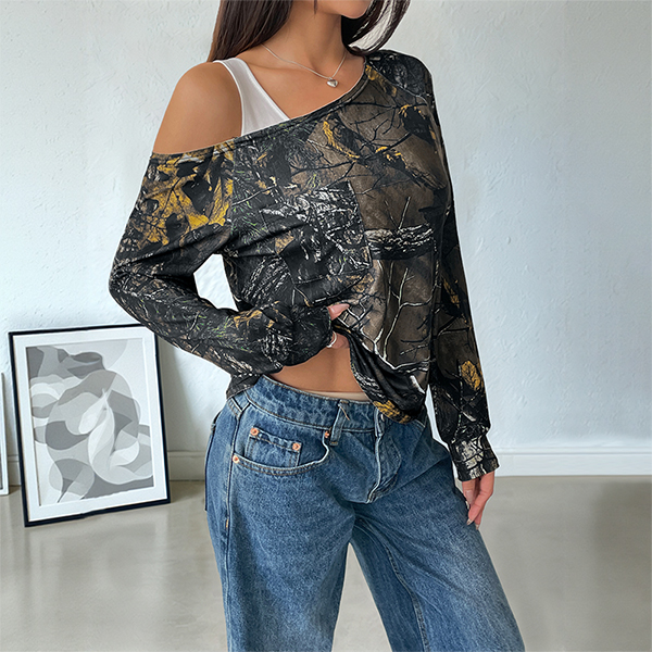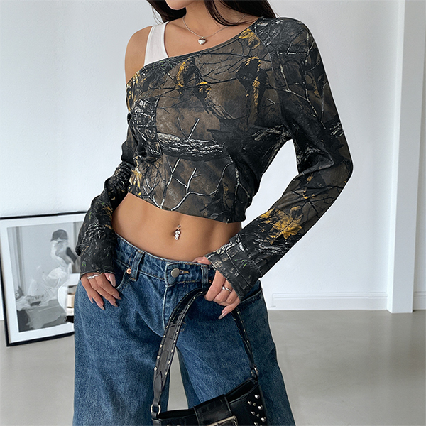 Fashion Slant Shoulder Long Sleeve Printed Shirt