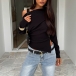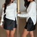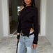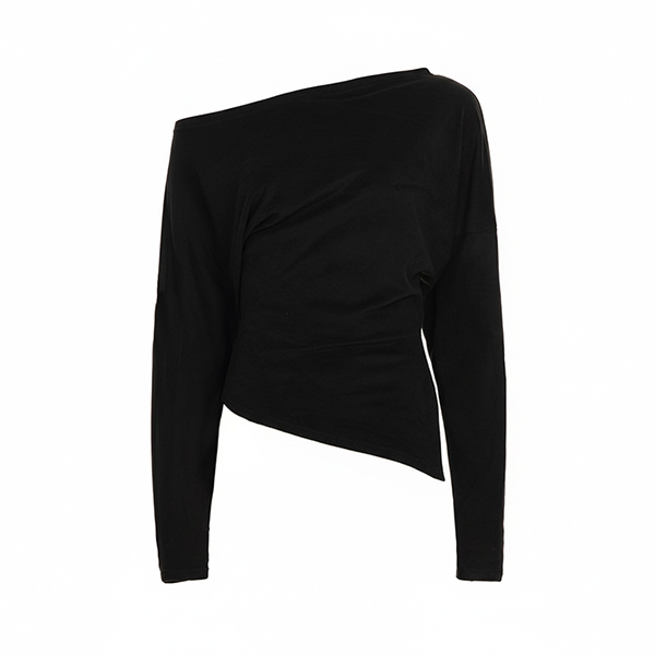 Fashion Slant Shoulder Long Sleeve Side Slit Irregular Hemline Shirt