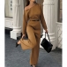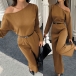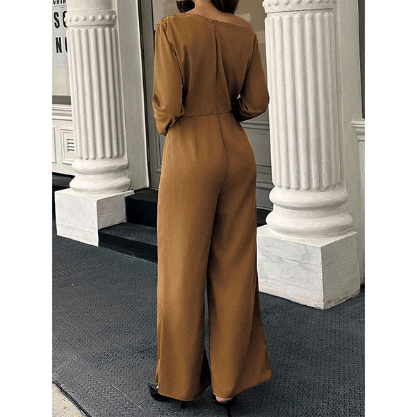 Fashion Slant Shoulder Long Sleeve Straight-cut Jumpsuit