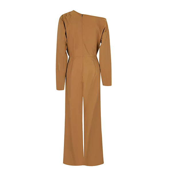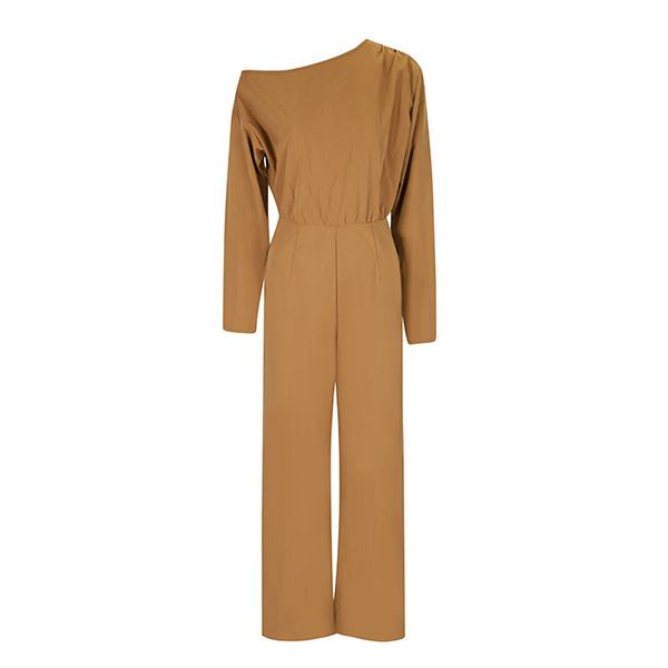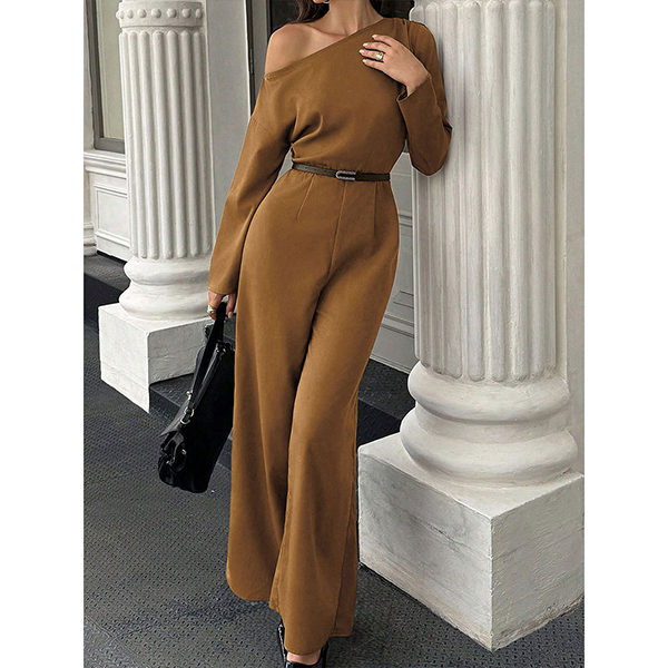 This fashion jumpsuit features modern fashion styling with innovative slant shoulder construction and sleek straight-cut design for sophisticated asymmetrical elegance. Perfect for daily wear.