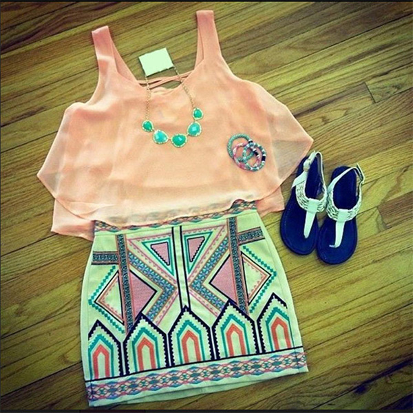 Consists of a sleeveless chiffon top and a high waist printed skirt,this two-piece set is sure to give you a cozy yet stylish style.