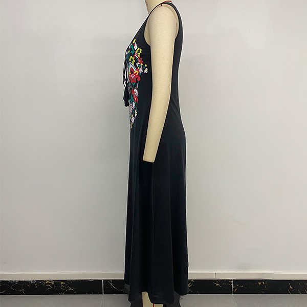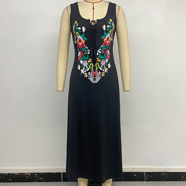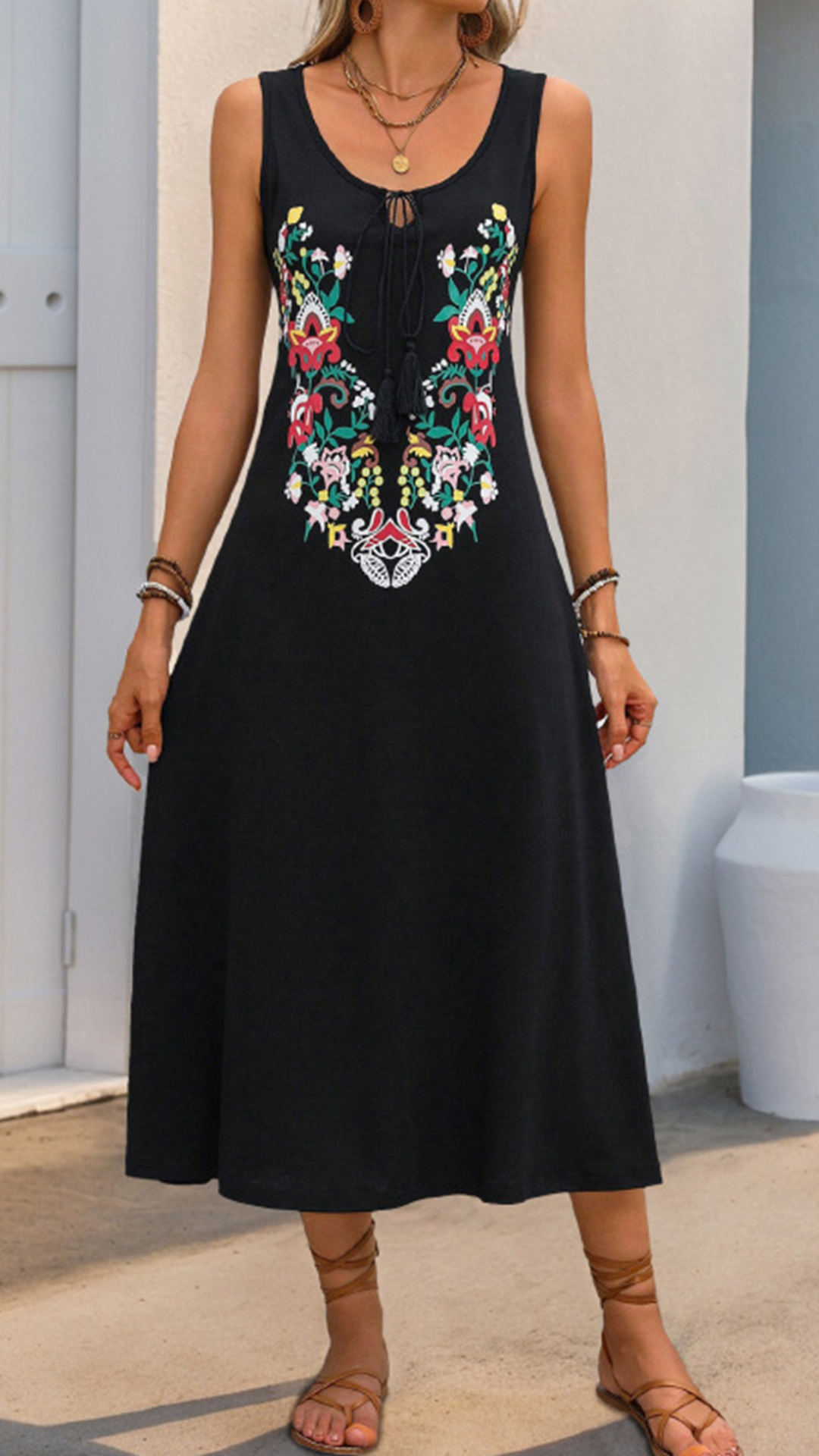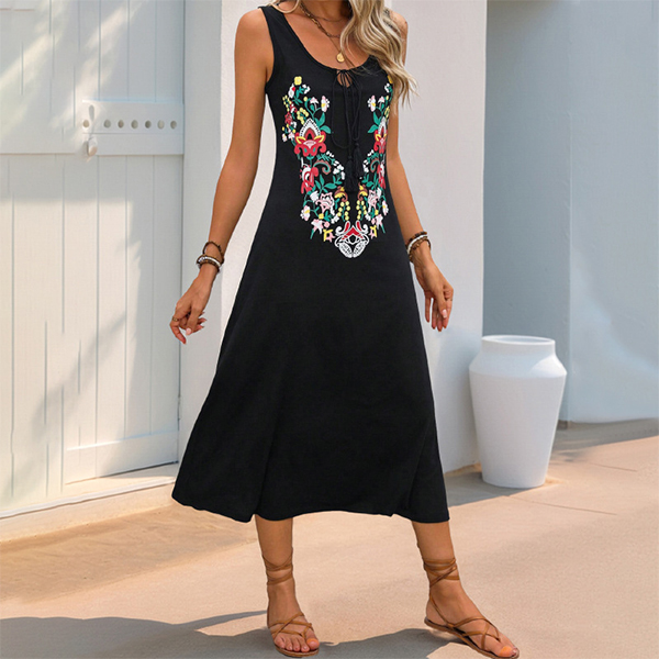 Fashion Sleeveless Ethnic-Style Printed Skirt: Casual, Versatile Ladies Dress