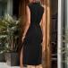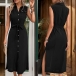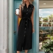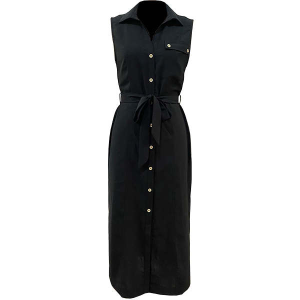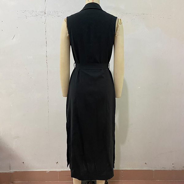 Fashion Sleeveless Front Button Self-tie Waist Side Slit Shirt Dress
