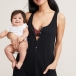 For the lactation ladies,this multifunctional jumpsuit can be their wise choice. It comes with a solid color,the unique chest design makes it more convenient for lactation. Finished with sleeveless,round neck,high waist and a loose silhouette,this piece not only can keep the comfy,but also can showcase your slender figure.
