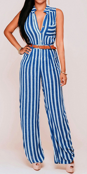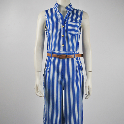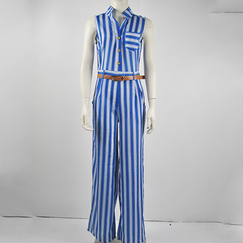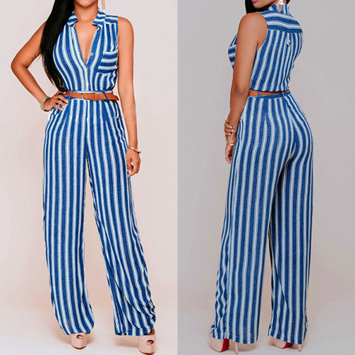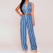 Fashion Sleeveless High Waist Striped Jumpsuits with Waistband