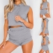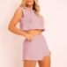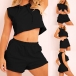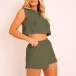 Fashion Sleeveless Hooded Crop Top + Shorts Two-piece Set