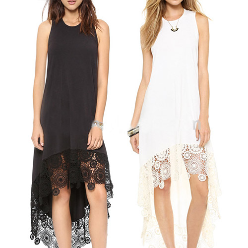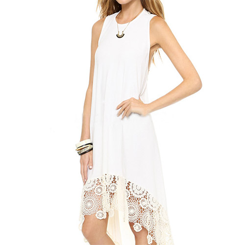 Fashion Sleeveless Lace Spliced Irregular Hem Dress