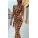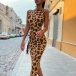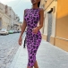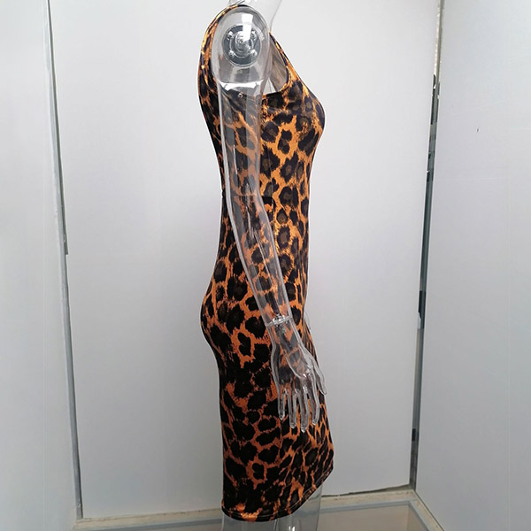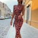 Fashion Sleeveless Mock Neck Leopard Printed Dress