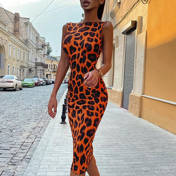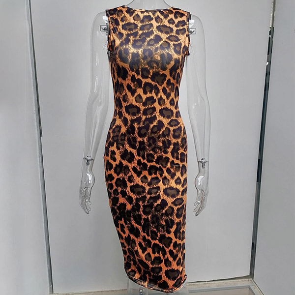 Thanks to the leopard printed details,this dress can help you win more eyes. Finished with sleeveless,mock neck and a clean silhouette,this dress is sure to offer you a cozy yet stylish style. Perfect fit for your summer days.